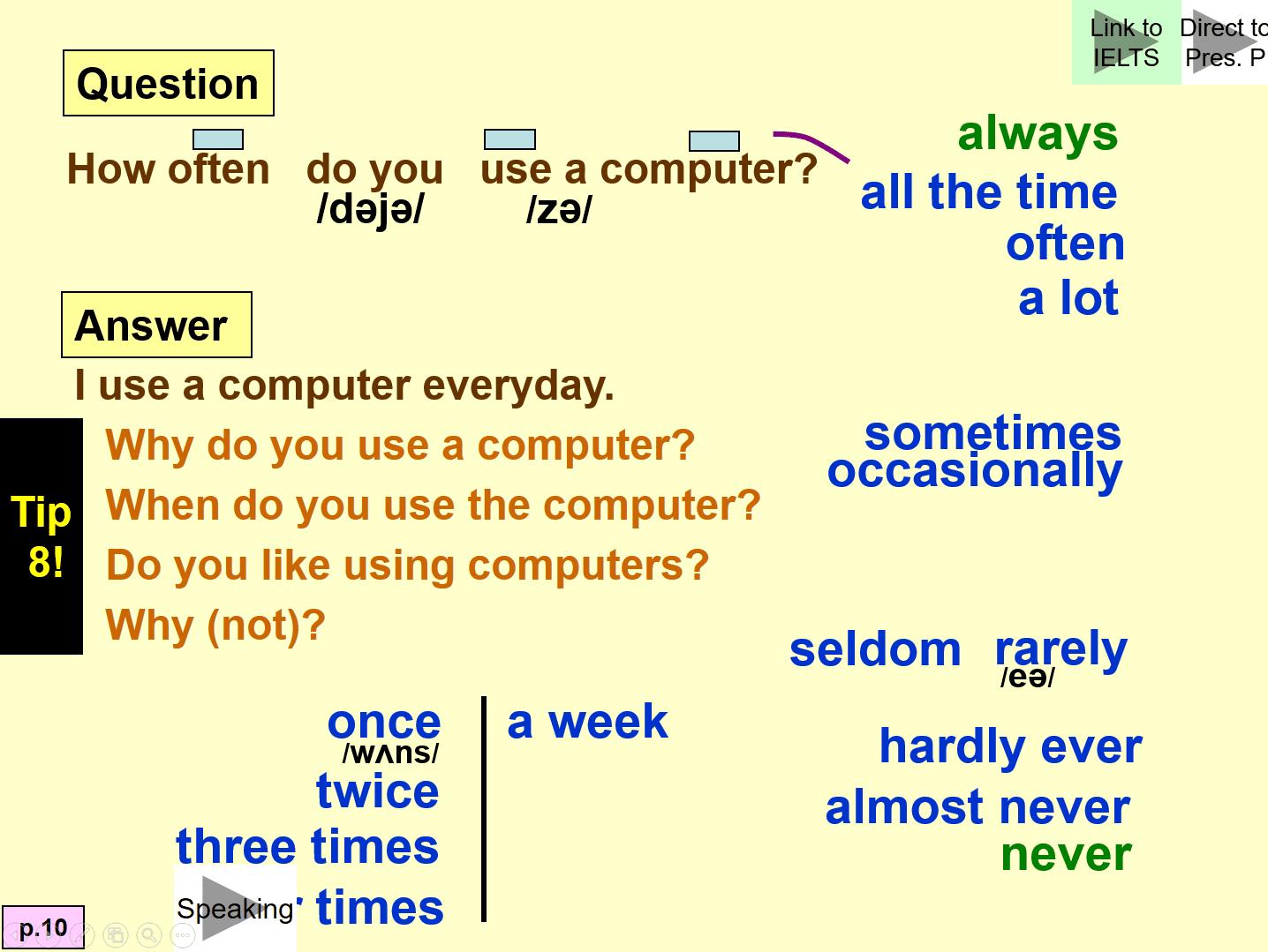 這張投影片的「按鈕」會開啟其他所有PowerPoint程式/投影片(包括等等顯示的),然後就會再開啟下一個、這個又會再開下一個,形成驚人的教學資源網路。只要你來旁聽我的課,就能看到這些投影片運作的樣子。整個教學過程都是由這世上最精緻、最複雜、設計最用心的PowerPoint投影片所推動,目標只有一個:讓你們對雅思考試做更好的準備。